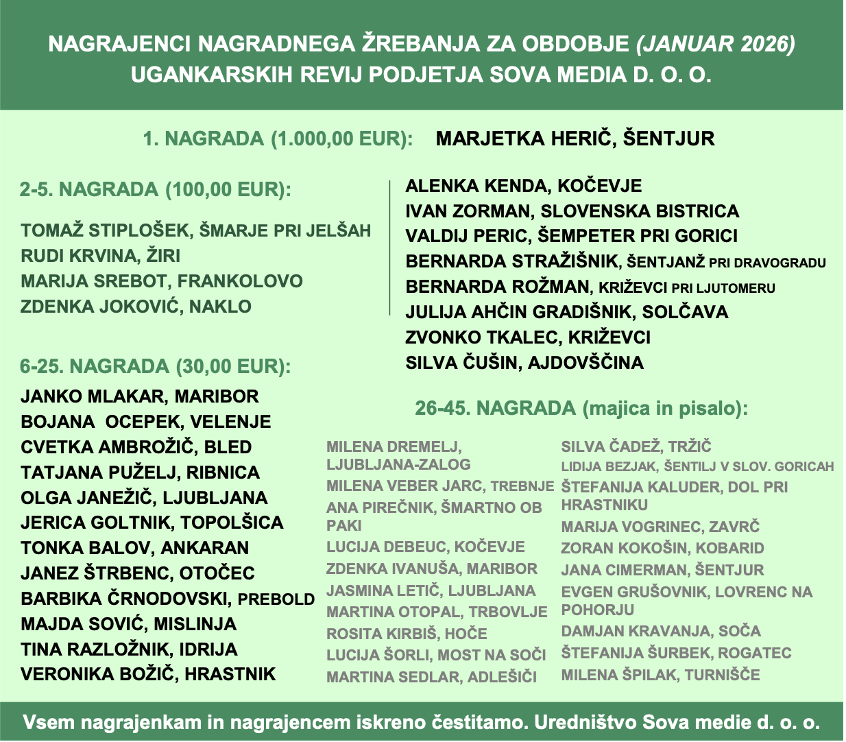 Nagrajenci – Januar 2026