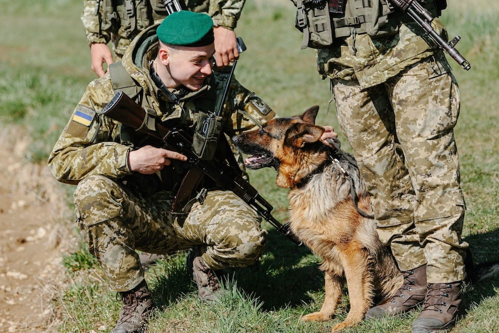 Odličen policijsko-vojaški pes. Na sliki v družbi vojakov na madžarsko-ukrajinski meji.